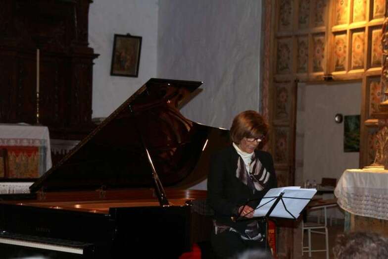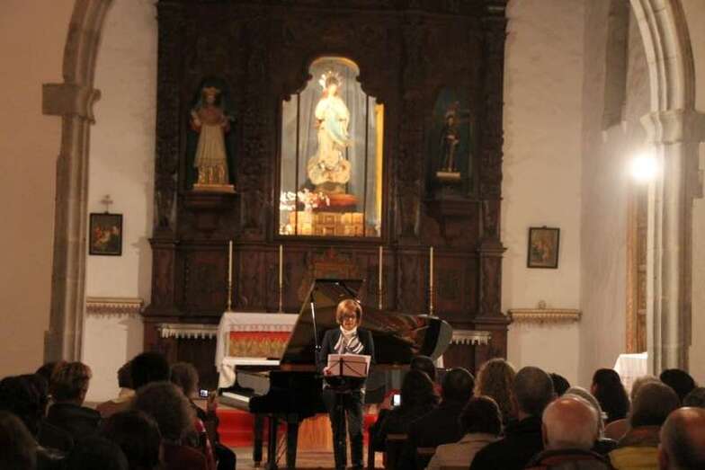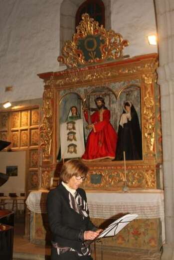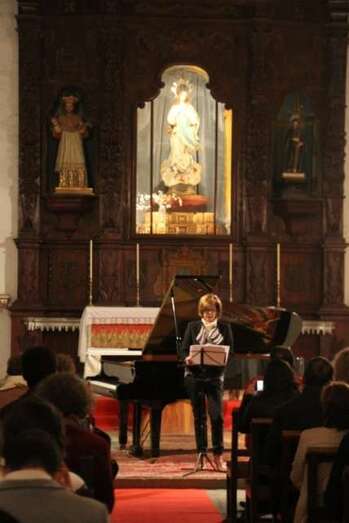 La presidenta del Círculo Cultural de Telde doña Lucana Falcón León, da la bienvenida al público asistente y el agradecimiento por su presencia para la audición de este ya tradicional concierto de Año Nuevo 2015 que llenó las naves del templo e inicia la presentación de los cantantes líricos y pianista: