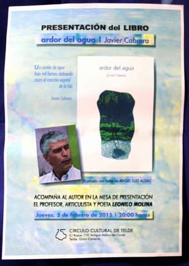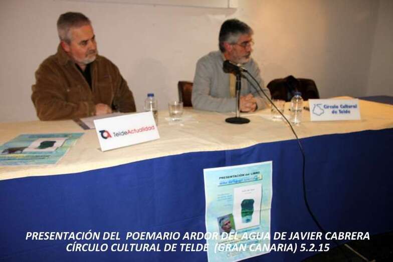 Telde.- La sede del Círculo Cultural de Telde acogió el pasado jueves la presentación del poemario Ardor del Agua del escritor, poeta, antólogo, compilador y editor canario, Javier Cabrera. Se trata de un libro editado por Gas Editions, con fotografías de Ángel Luis Aldai.