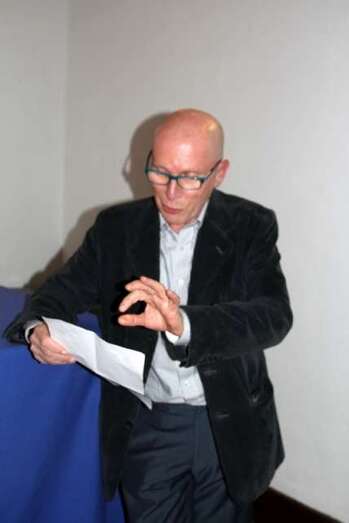 Inicia el acto de presentación el profesor Arístides Ramírez Martel, miembro de la junta directiva del Círculo Cultural, que expresa el agradecimiento al escritor, por haber escogido este emblemático lugar que abraza precisamente el concepto literario principal del poemario, el agua: “Bienvenidos, el Círculo Cultural de Telde se honra en acoger la presentación del libro Ardor del Agua del compañero Javier Cabrera. Él es poeta, antólogo y compilador y además editor literario. Tiene en su haber varios premios y menciones de poesía, tanto de Canarias como fuera de ella.