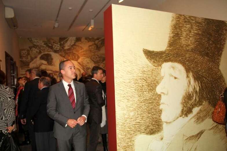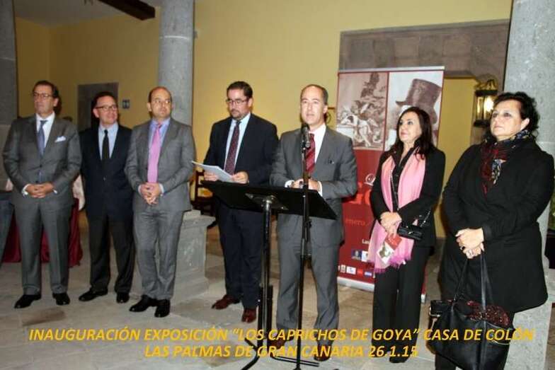 Hace apenas un año y algo, en diciembre de 2013, colgábamos en estas mismas paredes, Los Disparates de Goya, Colección de la propia Casa de Colón, y cuando estábamos prácticamente descolgando aquella exposición empezamos las conversaciones con Roberto que han finalizado con esta exposición histórica, los 80 grabados de la colección de Los Caprichos de Goya, están hoy aquí. Y hay una cuarta serie de los grabados de Goya, como saben ustedes de Tauromaquia, y ya gentilmente esta mañana hemos tenido una conversación con Marisa y estamos seguros que más pronto que tarde veremos también colgadas en estas dependencias de la Casa de Colón, esa cuarta serie de Goya.