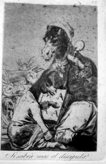 Francisco de Goya y Lucientes, (Fuendetodos, Zaragoza 1746-Burdeos, Francia, 1828), pintor y grabador, es una de las figuras trascendentales de la Historia del Arte. A caballo entre dos siglos, punto focal del panorama artístico posterior, se le considera precursor del Romanticismo, abriendo el camino hacia la Modernidad. En 1799, tras ser nombrado Primer Pintor de Cámara, Francisco de Goya publica la serie llamada Los Caprichos, que sería la primera de las cuatro grandes series que realizó y que estaba compuesta por ochenta estampas. Una vez más demuestra ser un intelectual ilustrado y capaz de criticar con su maestría los excesos de la sociedad de su tiempo. De este modo, la serie es una sátira de las sociedad española del finales del siglo XVIII, especialmente de la nobleza y del clero.