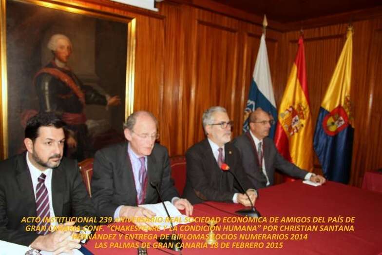 Telde.- Dentro del acto institucional que conmemora el 239 aniversario de la Real Sociedad Económica de Amigos del País de Gran Canaria, Christian Santana Hernández, especialista en la obra del dramaturgo inglés más destacado, impartió una conferencia denominada Shakespeare y la condición humana.