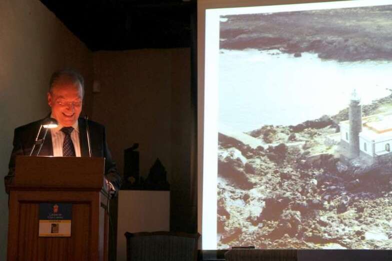 Agradeciendo al amigo Fonte su colaboración en este ciclo de conferencias con el lema de Todo por y para Gran Canaria y El Puerto lo primero, toma la palabra don Juan Francisco Fonte Ojeda que expone a través de diferentes capítulos de su disertación que él titula, Los Faros como apoyo de los Puertos del Archipiélago Canario: El Primer Faro que alumbró en Canarias. Nuevas Torres en el Siglo XIX. 27 Faros Señalan el Rumbo en Canarias. De la Isla Meridiano a Alegranza. El Alma de los Faros. Una Aventura para Valientes. Las Piedras que dan forma a los Faros. El Correíllo de los Faros. Tres Planes de Alumbrado Marítimo en los Siglos XIX y XX. Un Proyecto Frustrado de César Manrique. El Faro de Maspalomas, Emblema de Gran Canaria. Una Torre Histórica. Homenaje a las Familias de los Fareros. Canto al vecino Faro de la Isleta.