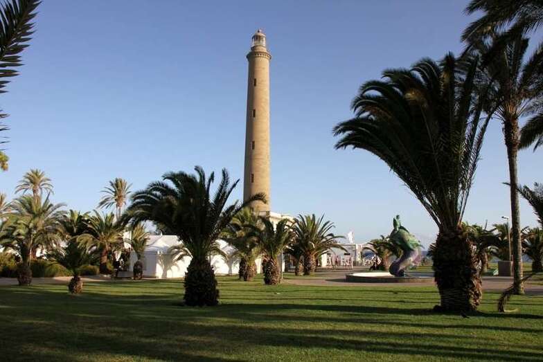 El Faro de Maspalomas, emblema de Gran Canaria: Como un gigante e intrépido Atlante se alza este faro, junto a la desembocadura del Barranco de Maspalomas y a una milla al oeste de la Punta del mismo nombre, que el pasado 1 de este mes de febrero cumplió 125 años de su puesta en funcionamiento. Es el Faro de Maspalomas el rey de las torres marítimas de Gran Canaria, con sus 56 metros de altura, 8,12 de diámetro. Hay que pensar que este faro en un principio para hacer la explanación, un aljibe, el muelle y la casa, se tardaron dos años, y para construir el faro desde los cimientos hasta la torre, en este caso tres años. Este faro de Maspalomas es el rey de la torres grancanarias con sus 56 metros de altura y 8,12 metros de diámetro con una escalera helicoidal de 271 peldaños, para llegar hasta su cúspide, siendo el mejor conservado de de los 27 faros que alumbran a todas las islas.