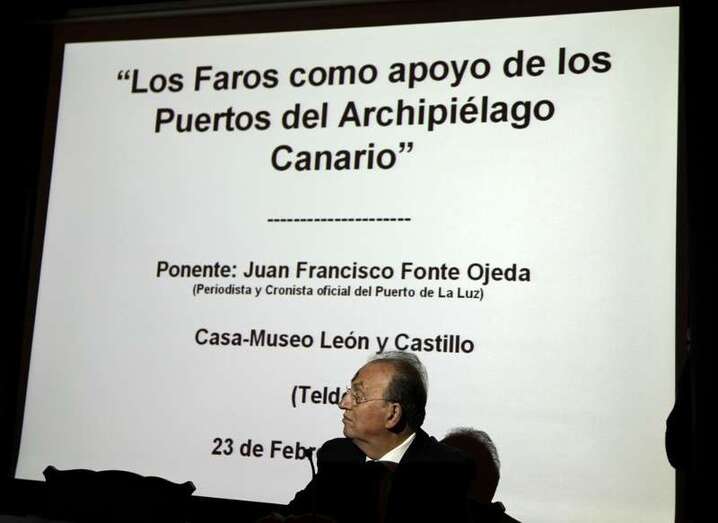 El periodista y Cronista Oficial del Puerto de La Luz y de Las Palmas, don Juan Francisco Fonte Ojeda, impartió la primera conferencia que con el título de Los Faros y Puertos del Archipiélago Canario, en la tarde del lunes 23 de febrero, como primer día del ciclo que se desarrollará hasta el próximo miércoles 25, en la Casa Museo León y Castillo de Telde, enmarcado en los actos conmemorativos del 125 aniversario del emblemático Faro de Maspalomas, cuyo artífice de dicha construcción fue el ingeniero teldense Juan de León y Castillo. Obra puesta en funcionamiento el 1 de febrero de 1890.