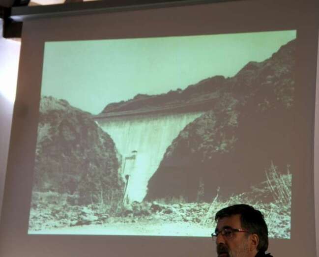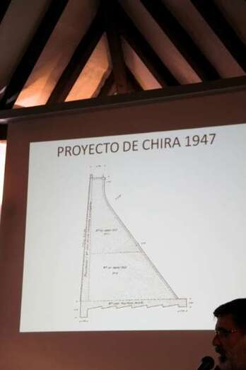 Decirles que aquí tenemos un estudio de las presas como no lo hay en las Islas Canarias. Las presas, piensen ustedes que en el año 1969, la isla de Gran Canaria se decía que tenía un pozo, por cada km2, es decir, del orden de 1.535 pozos. Pero en presas es la número 1 en toda Canarias, de hecho tiene más presas. Lo que llamamos, Grandes Presas, a partir de 15 metros el muro de cerramiento, no sólo en el número de presas por km2, en España es un referente, La Gomera y Gran Canaria. Las presas son muy importantes en la generación que viene en camino y no solo como almacén de agua, no sólo como recolectoras de sus propios cauces, el agua no es agua de lluvia sino de pozos y galerías también. Las presas del norte se utilizan como almacén. Aunque el futuro de las presas será el de la energía, Chira-Soria es un ejemplo más de los que podríamos tener en la isla, cuando el día de mañana la energía sea fotovoltaica, eólica, cambia de palabra renovable a alternativa, actualmente no son alternativas, eso en esta isla está resuelto utilizando nuestras presas. Muchas gracias”.