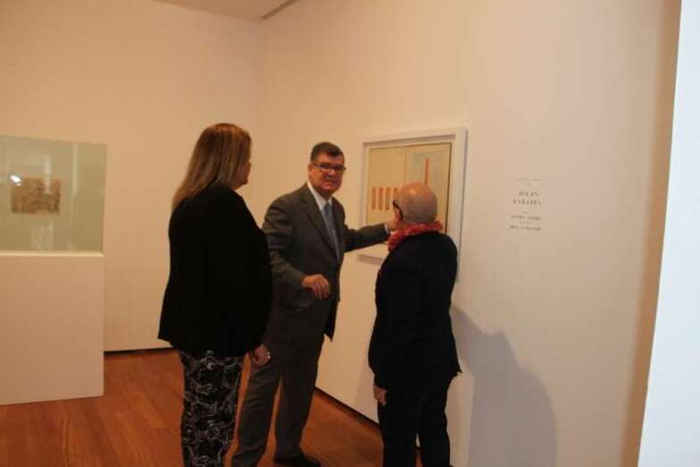 Recibidos en el Centro Museístico por don Omar-Pascual Castillo, director del CAAM (Centro Atlántico de Arte Moderno), acompañados de un grupo de estudiantes de Arte de la ULPGC, y del alumno Aithamy Daylo Trujillo Rodríguez, que cursa prácticas de Historia en la Casa Museo León y Castillo Centro de Historia Contemporánea, proceden a visitar la exposición Plácido Fleitas 100 Años Maestro de las Formas, Fondos del Cabildo de Gran Canaria.