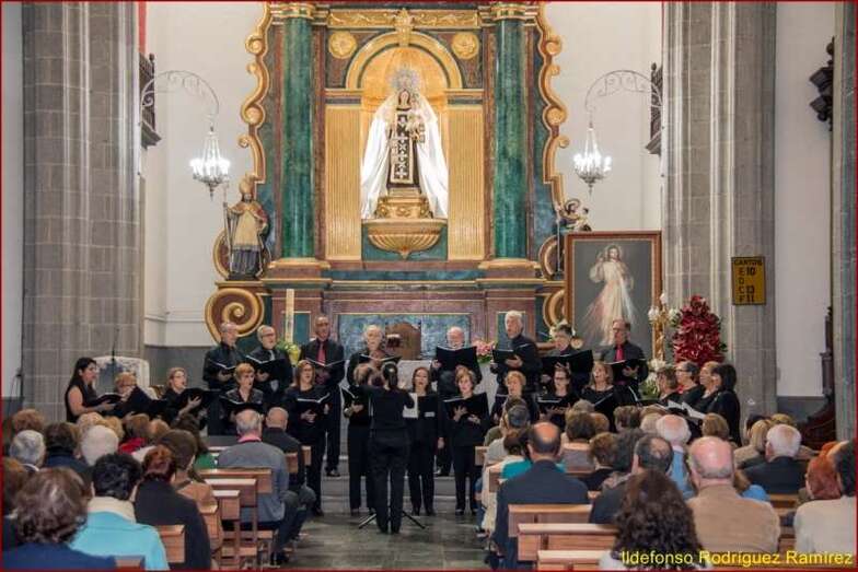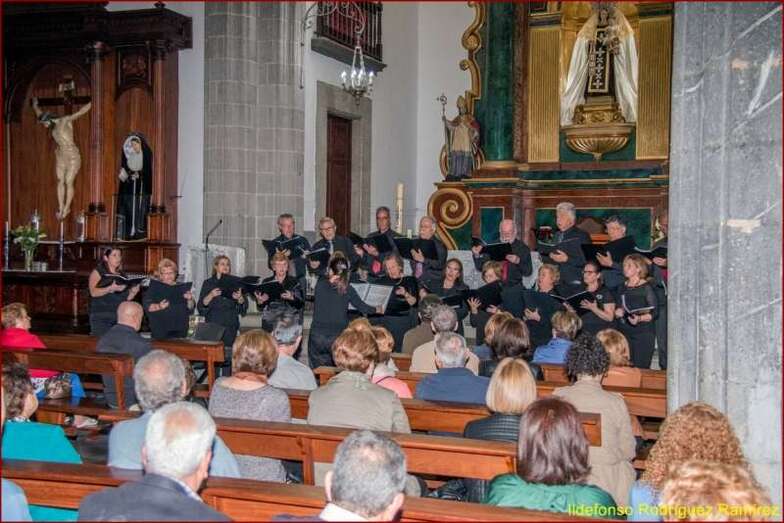 Programa que bajo la dirección de la profesora Narmis Hernández interpretaron las siguientes composiciones: Ave María, de Jakob Arcadel. Laudate Dominum y Canticorum Iubilo, de G. F. Händel (1685-1759). Panis Angelicus, César Frank (1822-1890), arreg. John Rutter, tenor solista Angelo Afonso Pérez. The Lord Bless You, de E. Fred Morris. O voso galo comadre, canción tradicional gallega, M. Groba. La Tarara, popular de Soria, Jean Turellier. El Arroyo que murmura, guajira, de Jorge Anckermann en versión coral de Electo Silva. Dulce Embeleso, bolero, de Miguel Matamoros, versión coral de Electo Silva. Mi garganta, canción popular argentina, de Carlos Guastavino. May the Road, tradicional Irlanda, Arrg. E. Lundström, interpretan a dúo Sebastián Ramírez y Rosario de la Nuez y coral. Lord I Want, tradicional spiritual. God’s Great Family, de David M. Combs, coral, y armónica solista, Jesús Ruiz. Goodnight, sweetheart, Carter, Hudson, Sunday. Amazing Grace, tradicional himno, voz solista de Narmis Hernández y coral. Hashivenu, popular israelí. Ipharadisi, tradicional de Sudáfrica.