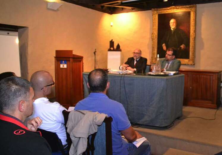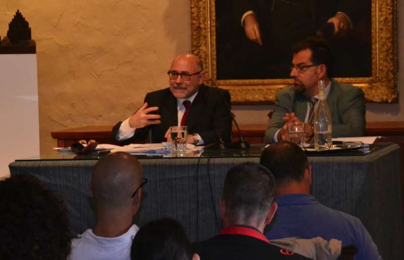 El profesor Guillermo Pérez (i), esta tarde en Telde (Foto TA) El profesor Guillermo Pérez (i), esta tarde en Telde (Foto TA)