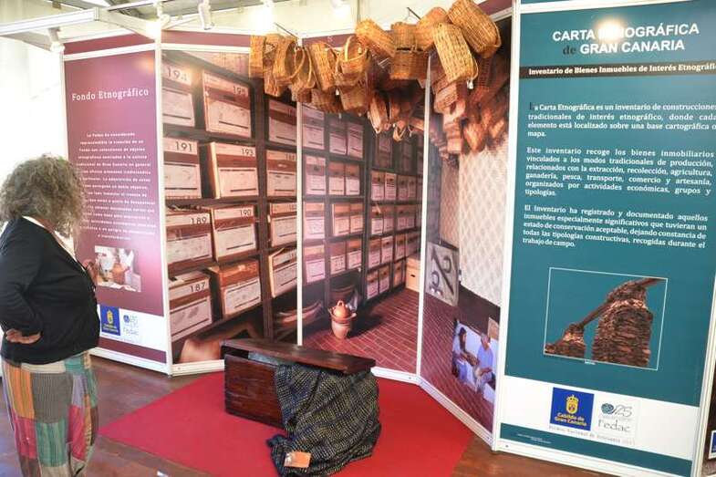 Esta mañana, en la parte alta de la Avenida de la Constitución, en pleno corazón del barrio teldense de Los Llanos, abría al público una carpa con distintos elementos expositores y digitales de cada uno de sus departamentos de la fundación: Investigación, Comercialización, Oficios, Fondos Audiovisuales, Carta Etnográfica de Bienes Inmuebles y Fondo Etnográfico de Bienes Muebles.