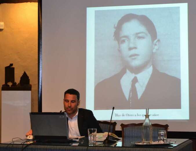 A continuación fue Ibon Arbaiza el que tomó la palabra, para a través de la experiencia didáctico-pedagógica y de su participación activa en la vida asociaciones de escritores, así como la proyección de una pieza audiovisual, ahondar en la personalidad del Blas de Otero, comparando a este autor con otros coetáneos y marcando así sus similitudes y sus diferencias más notables.