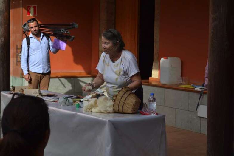 Tras la apertura oficial, que tuvo lugar a partir de las 18.00 horas de la mano de la alcaldesa Mari Carmen Castellano, Jesús Santana Marrero, coordinador de la Escuela Municipal de Folclore-CEMEFO, Andrés Pulido Rodríguez, comisario de las jornadas, la artesana teldense Nilia Bañares Baudet impartió un taller sobre los tintes naturales y las técnicas de teñido tradicional.