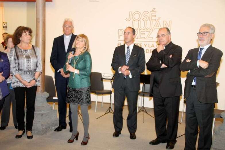 Seguidamente interviene el Obispo de la Diócesis de Canarias don Francisco Cases y la Comisaria de la Exposición, María de los Reyes Hernández Socorro que en el díptico informativo de la muestra expone: “Enigmática y armónica belleza, sentimientos contenidos y encontrados se entremezclan en el imaginario sacro de José Luján Pérez. Su particular discurso estético ha supuesto un permanente diálogo para el espectador atemporal de ayer y de hoy, en la que la exaltación y el arrebato religioso se funden con un sosegado intimismo devocional de carácter privado. Este pensamiento artístico ha hecho posible que distintas generaciones de canarios consideran a este imaginero- nacido a mediados del setecientos en Guía de Gran Canaria- un artista cercano, identificado con las esculturas pasionarias custodiadas e distintas iglesias del Archipiélago, que anualmente recorren las calles principales de distintas islas durante la Semana Santa. Pero junto a ese Luján reconocido públicamente, hay oro Luján que podemos considerar íntimo, el que talla con mimo y cuidado pequeñas tallas, microimaginería, para oratorios privados.