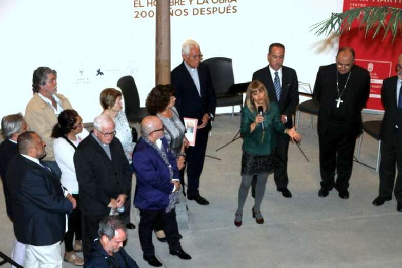 A don José Lavandera, el auténtico especialista en el patrimonio eclesiástico de la Diócesis de Canarias. Gracias a Mari Carmen Mendoza, Concejala del Ayuntamiento de Santa María de Guía, patria natal de don José Luján Pérez, y gracias a Omar Pascual, director del Centro Atlántico de Arte Moderno, y a todo el quipo, a Miguel Pons, a Beatriz Sánchez, a María Cárdenes, Javier Curbelo, Marta Plasencia, y a tantos otros que han estado durante mucho tiempo trabajando incansablemente hasta el último minuto de hoy, quitándole horas al sueño para que hoy esto brille como va a brillar a partir de la inauguración.