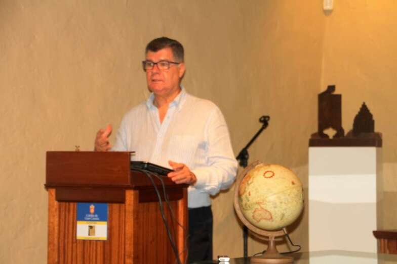 Espiño, que fue presentado por Antonio María González Padrón, director de la Casa Museo León y Castillo, se acompañó en su conferencia de la proyección de power point confeccionado ex profeso para esta actividad. Explicó con toda suerte de detalles los diferentes espacios naturales de Gran Canaria, desde la cumbre hasta las playas arenosas de la costa, pasando por los profundos barrancos y fértiles vegas.