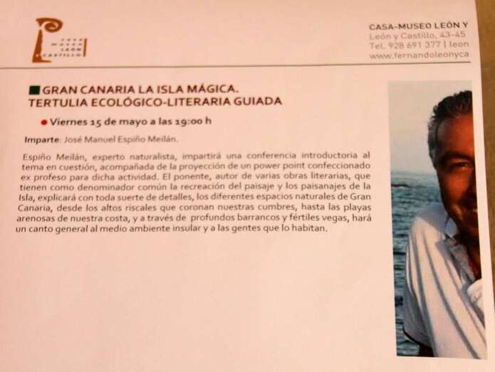 Telde.- En el marco de la programación por el Día Internacional de los Museos, la Casa-Museo León y Castillo (Telde) organizó el pasado viernes una tertulia ecológico-literaria a cargo del profesor José Manuel Espiño Meilán titulada Gran Canaria, isla mágica.