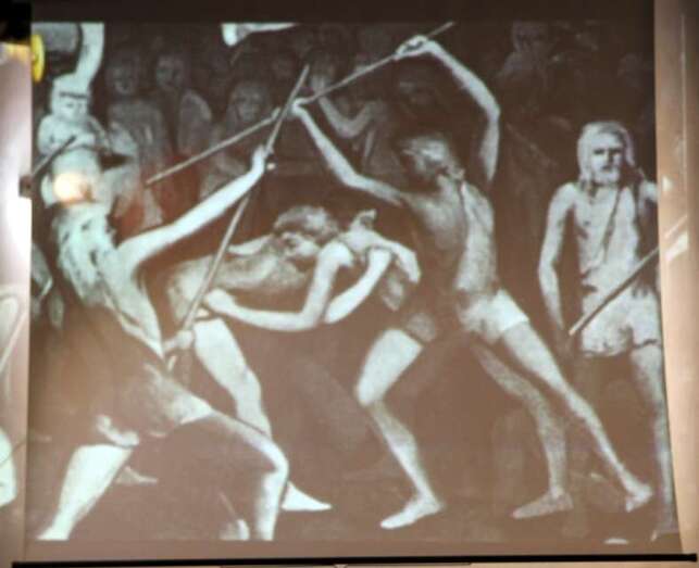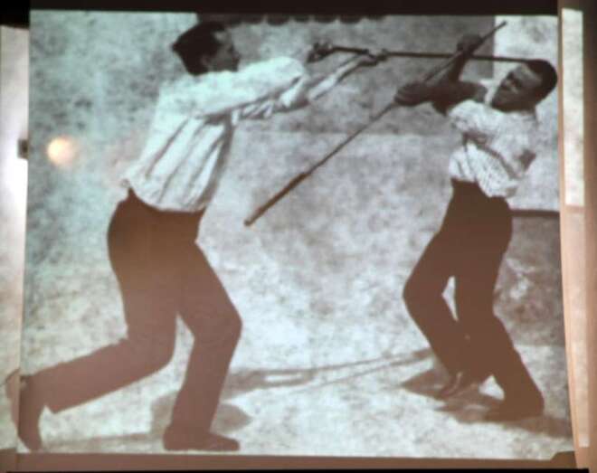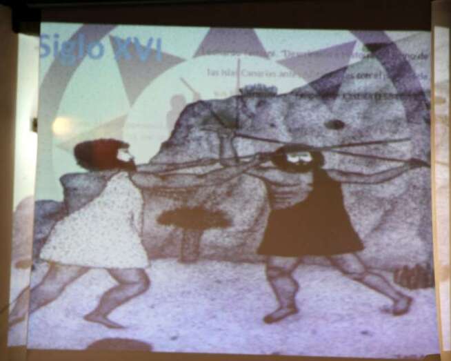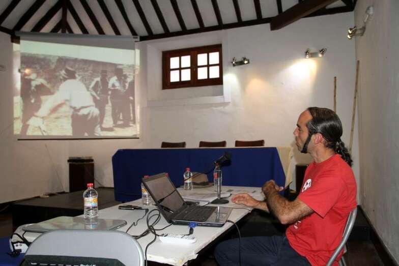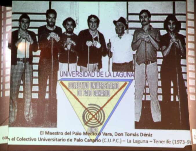 En el audiovisual se proyectaron imágenes de interés para conocer el rescate de esta tradición, la del garrote canario, que muestran cómo un grupo de jóvenes canarios se convirtieron en los Maestros de Escuela del Garrote Canario del Maestro Paquito Santana de Telde, título del audiovisual que se ha podido elaborar gracias al aporte de documentación y fotografías de los años en que se inició esta actividad como modelo de esta especialidad del palo canario, que se conservan y contribuyen a su conocimiento y difusión.