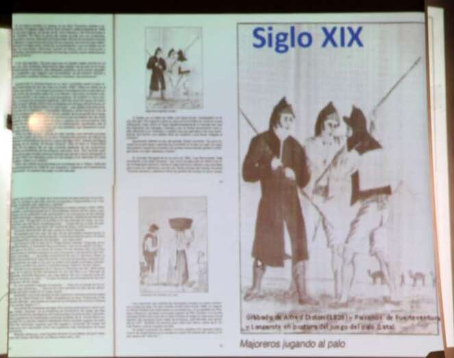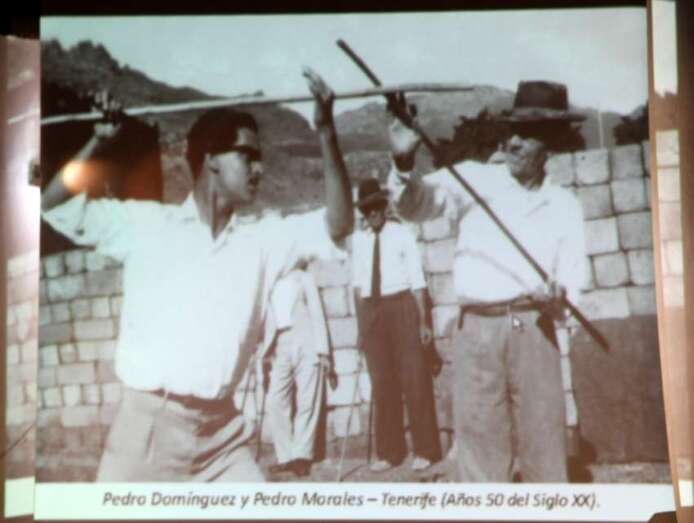 Ponencia coordinada y dirigida por Mario Rodríguez que describe textual y gráficamente la historiografía del uso de la herramienta del palo por los antiguos canarios, y su desarrollo y aplicaciones en la vida cotidiana, desde el ámbito rural, defensivo y deportivo en la isla de Gran Canaria y el resto del Archipiélago canario. Destacando en esta actividad la figura de Don Francisco Santana Suárez, Maestro Paquito.