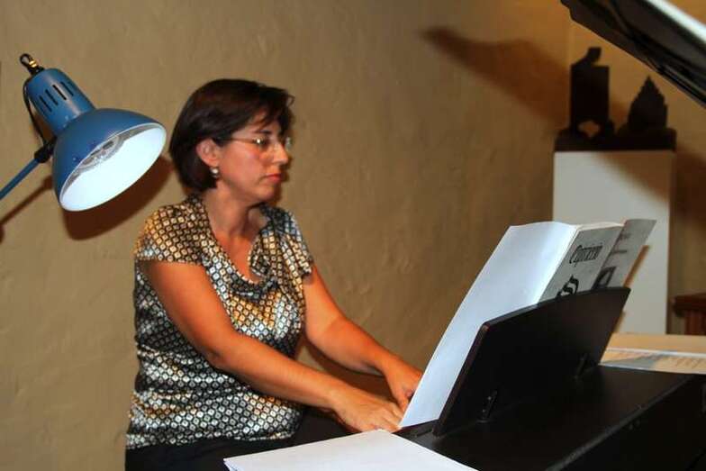 Y llegó el turno de la solista de piano en la magnífica obra Arabesque nº 1, del compositor francés Claude Debussy (Saint Germain en Laye, París 1862-París, 1918), que la pianista Sara Verona Martín dedica en este recital como solista de piano, en una maravillosa interpretación de cálidas resonancias impresionistas, un canto a la naturaleza, sus armonías y cromatismos traducidos en acentos musicales que logran crear una ensoñación para dejarse llevar por los sonidos que viajan por esta estancia, dando un respiro y calma a la voz, escuchando todas y cada una de las esencias pianísticas que la profesora Verona Martín hace llegar al público bajo las notas y esquemas del Arabesque nº 1 del gran Debussy.