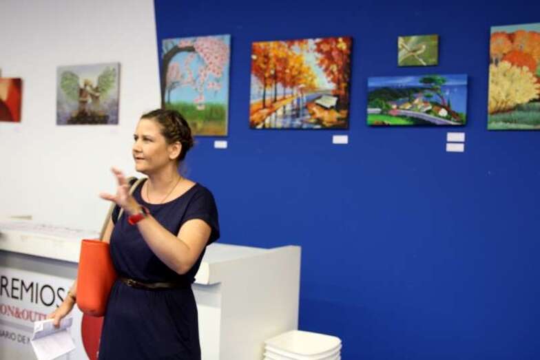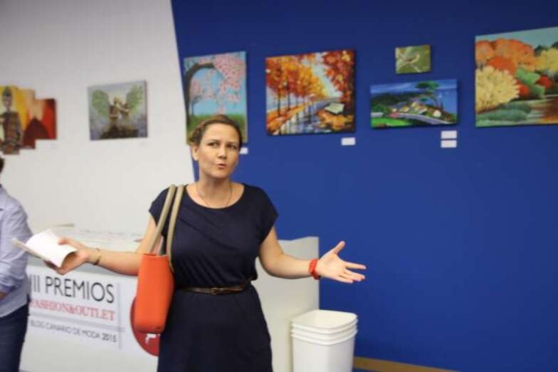 La profesora Nadia Brito, directora de la Exposición expresa: “En esta muestra se exhiben unas cien obras de diversos estilos, y es la segunda de las realizadas en el Centro Comercial. Hay una gran mayoría mujeres de diversa condición (jubiladas o trabajadoras), todas principiantes, aunque también exponen hombres. Las clases se imparten en las Asociaciones Vecinales de los barrios de Telde. Terminé la carrera de Bellas Artes y llevo trece años dando clases de pintura: he dado clases en Institutos, pero con la demanda de clases particulares de pintura, empecé con niños y adultos en una tienda. Ellos no tenían ni idea de pintar, venían para ocupar su tiempo libre y a aprender e iniciarse en la pintura como aficionados.