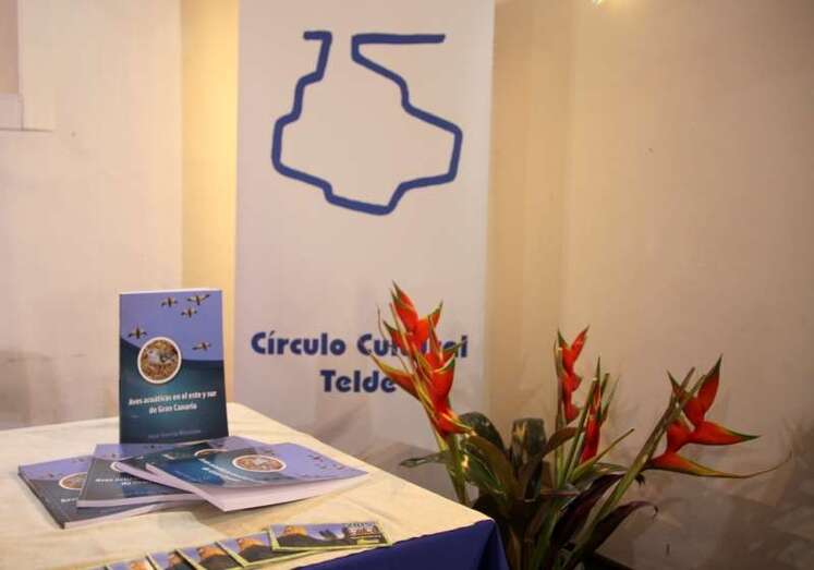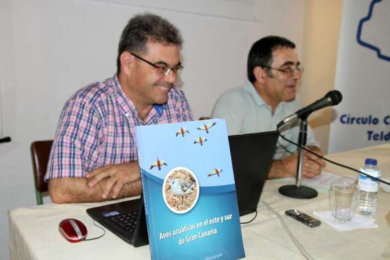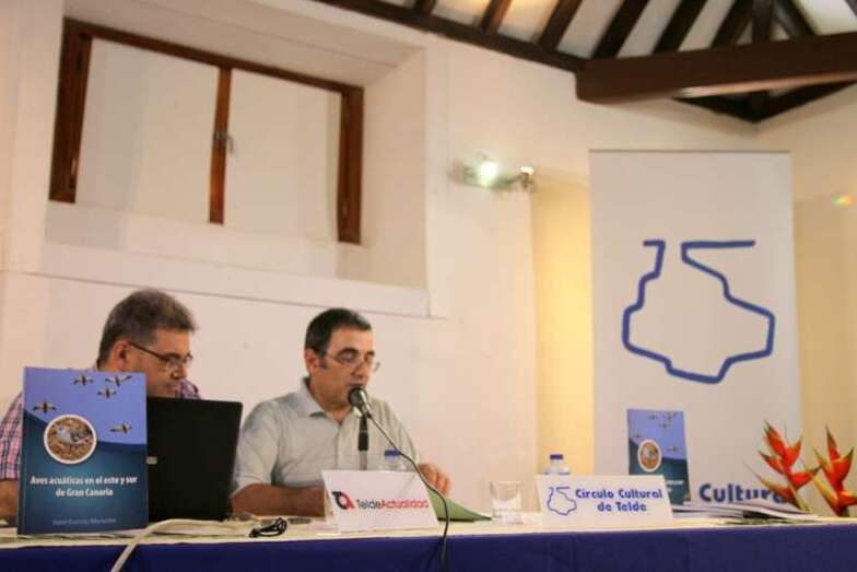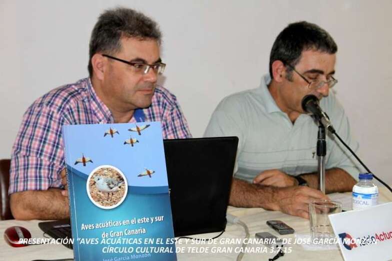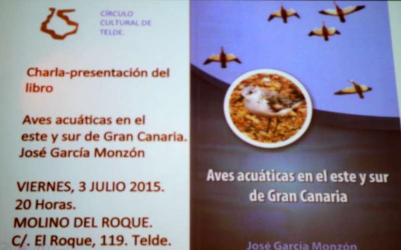 Una interesante conferencia coloquio sobre la naturaleza de las Aves acuáticas en el este y sur de Gran Canaria, que da título al libro presentado, con la charla impartida por el naturalista de vocación José García Monzón y autor de la obra, el viernes 3 de julio en el Molino del Conde sede del Círculo Cultural de Telde. Con la asistencia del Concejal Delegado del Área de Gobierno de Medioambiente y Territorio, Playas, Parques y Jardines del Ayuntamiento de Telde, don Álvaro Monzón Santana. La presidenta del Círculo Cultural de Telde, doña Lucana Falcón León. Miembros de la junta directiva y socios del Colectivo Turcón Ecologistas en Acción, y público interesado en seguir la exposición sobre la avifauna de la costa sur y este de Gran Canaria, en la que Telde da testimonio de las numerosas observaciones y presencia de estas aves acuáticas en su espacio costero.