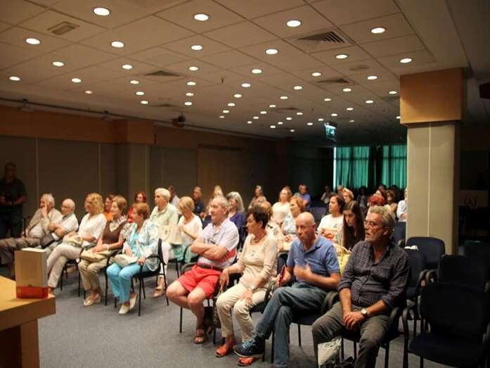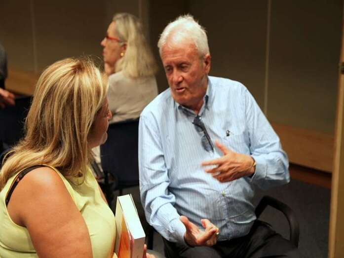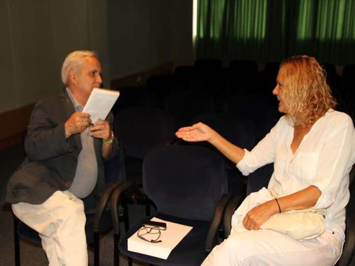 Finaliza las intervenciones de los periodistas radiofónicos, Jorge Alemán y Dulce María Facundo, en su excelente trabajo, ameno, bien coordinado y buen ritmo en las acertadas y diversas exposiciones de la entrevista. Se inicia una rueda de preguntas del público presente en la sala, entre los que hicieron acto de presencia, periodistas, escritores, poetas, profesores, articulistas colaboradores, medios de comunicación, estableciéndose una vía de información más detallada en las cuestiones que durante la presentación se establecieron, donde el escritor Juan Cruz acercó más su biografía, su buen oficio, su obra, el sentido del libro y de todo lo expuesto en esta memorable tarde periodística, literaria.