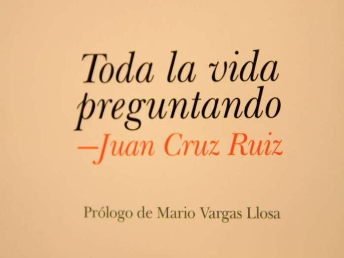 Toda la vida preguntando, de la editorial Círculo de Tiza, selección y edición literaria a cargo de Ulises Ramos Cordero, prologada por Mario Vargas Llosa, es una interesante obra de 420 páginas, para ser leída con calma, aproximarse a los personajes que se reflejan en ella, entender sus obras y existencias, gracias a la experiencia, profesionalidad y ejercicio del excelente periodismo de Juan Cruz Ruiz. En cada una de las 30 entrevistas, nombres de los personajes entrevistados, epigrafíados con citas personales, en respuesta a preguntas de toda una vida, origen del título del libro, para llegar a saber el porqué, del cómo, del cuando, o parte de sus vivencias reflejadas, revelan una gran parte de la historia, de la memoria de su paso, influencia y legado cultural por las diferentes experiencias que en la obra se exponen. El Premio Nobel de Literatura 2010, Mario Vargas Llosa, escritor entrevistado, prologa el libro y expone a este respecto: