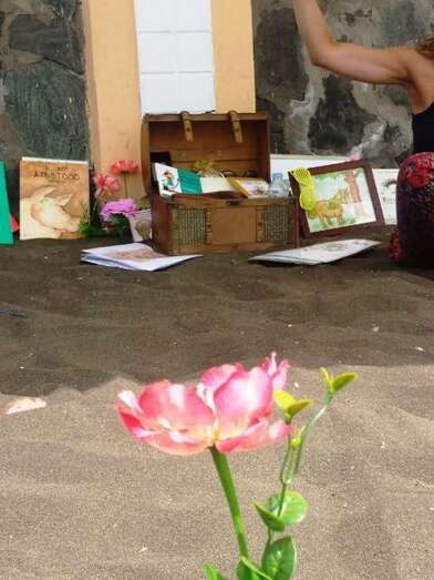 Los pequeños, con edades comprendidas entre los 4 y los 12 años, tuvieron la oportunidad de acercarse al mundo literario en la playa de Salinetas de la mano de Yanira Naranjo y Carmen Alzola, que fueron las encargadas junto a los trabajadores de las bibliotecas municipales de Telde que gestiona la Concejalía de Cultura a través de Gestel, de guiar las dinámicas de juegos y los cuentacuentos.