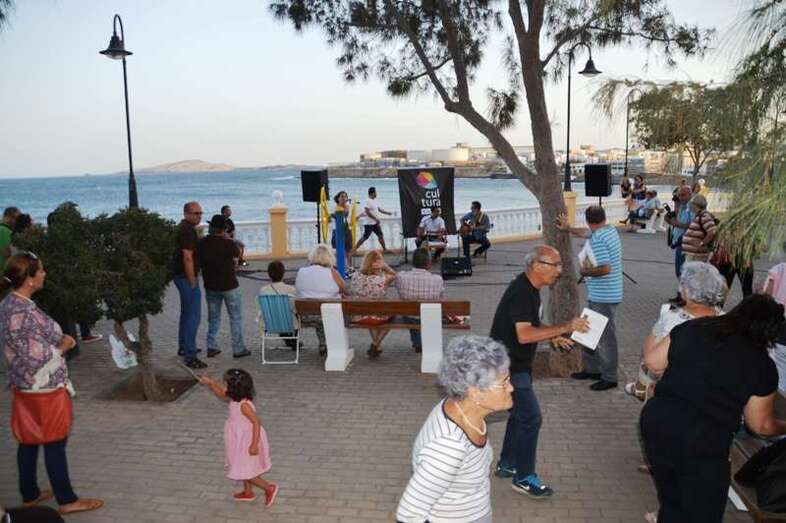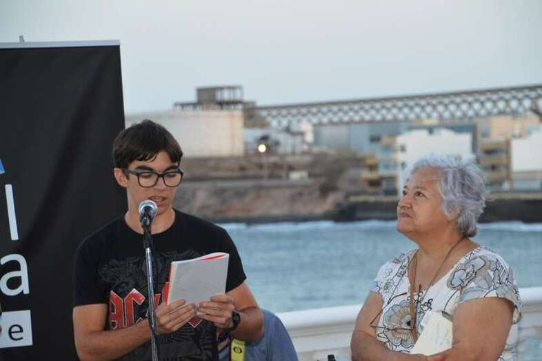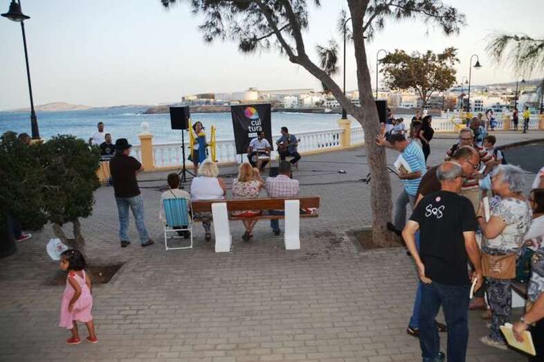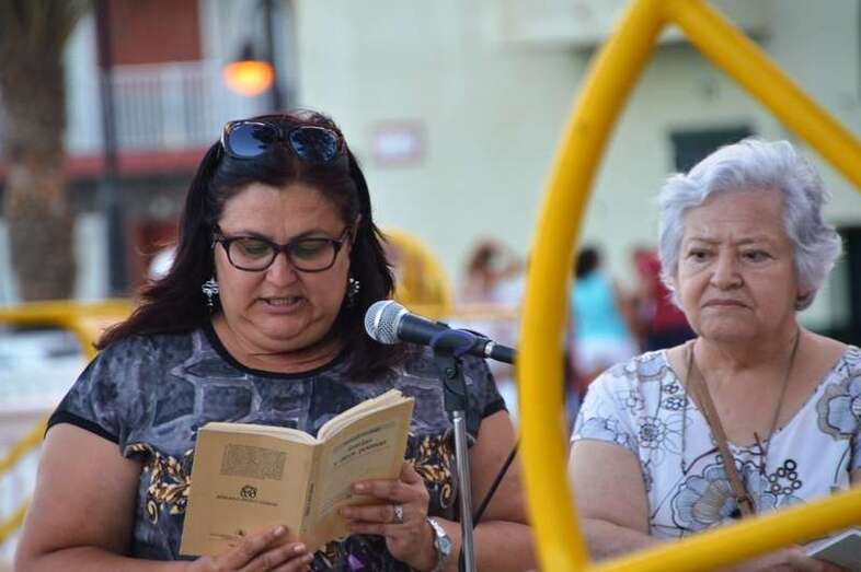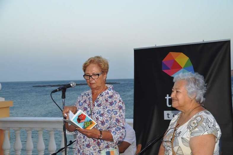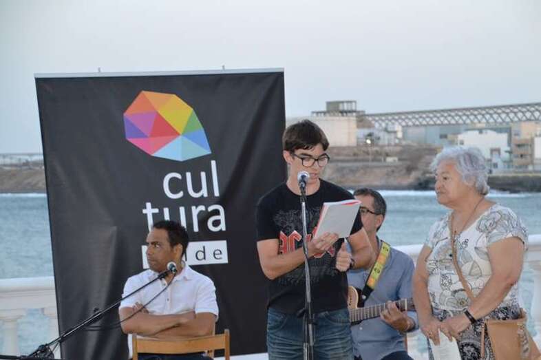 Una refrescante brisa de mar se alió esta jornada con la cita organizada por la Concejalía de Cultura que dirige la edila Guadalupe Santana, de Más por Telde, que llamó la atención de decenas de vecinos que quisieron pasar un rato escuchando los poemas recitados por Juana María Ruiz, Pepita Montesdeoca, María da Silva, José Juan Mugica, Adolfo García y el joven Ángel Manuel Chavarría, una de las últimas incorporaciones de la tertulia que surgió en 2008 y que cada mes se reúne en la cuarta planta de la sociedad cultural y recreativa La Fraternidad.