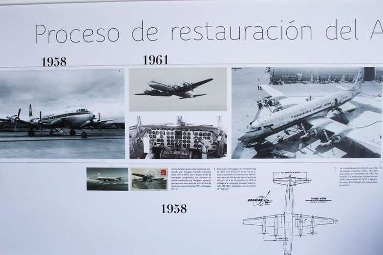 Terminadas las intervenciones se visita la exposición fotográfica e histórica del proceso de rehabilitación de la emblemática aeronave, un recorrido fotográfico que desde 1958 relata la historia del Douglas DC-7C, con algunas de las compañías internacionales que utilizaron sus servicios y a actualmente, lejos de aquellas últimas imágenes de deterioro por el paso del tiempo, hoy con los colores y emblemas de la Binter, una imagen al fin renovada y con otra visión muy mejorada del avión donado por la compañía Spantax en 1979 al Real Aeroclub de Gran Canaria para ser preservado por su denso historial.