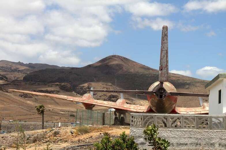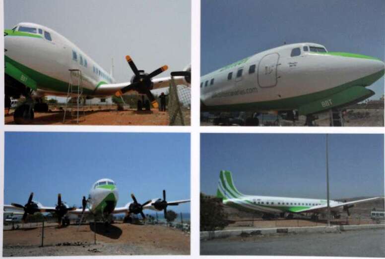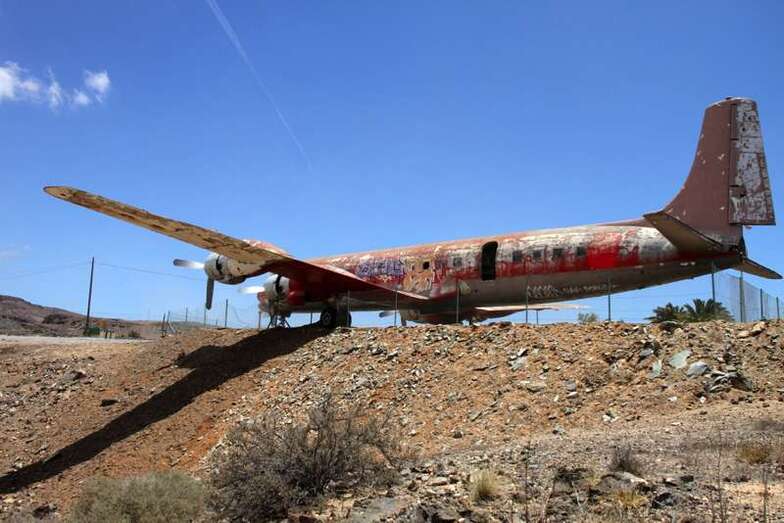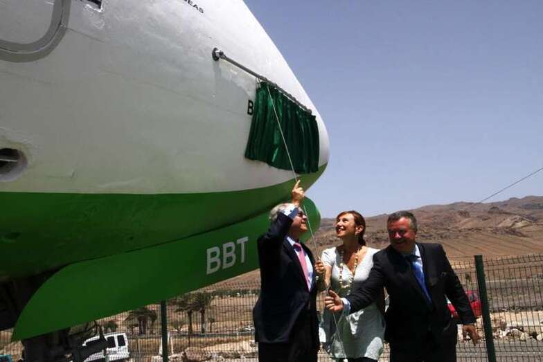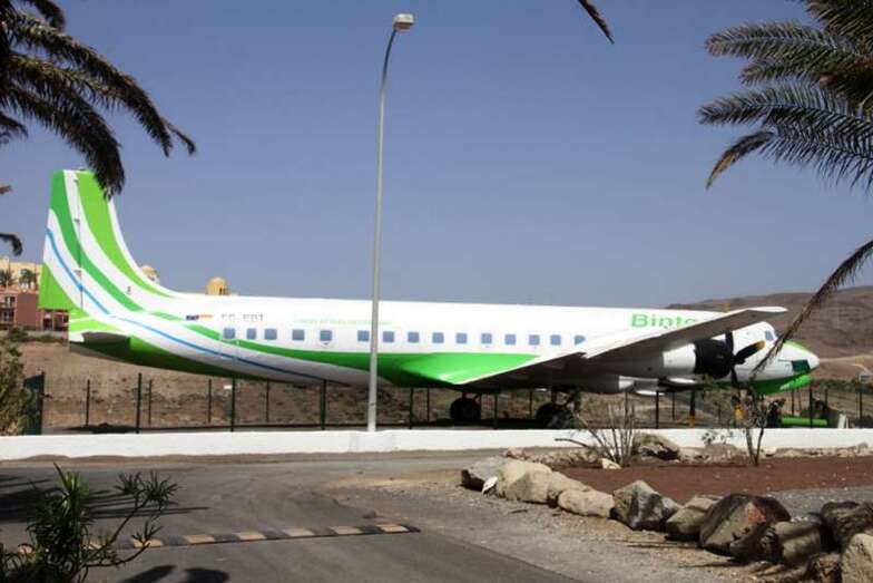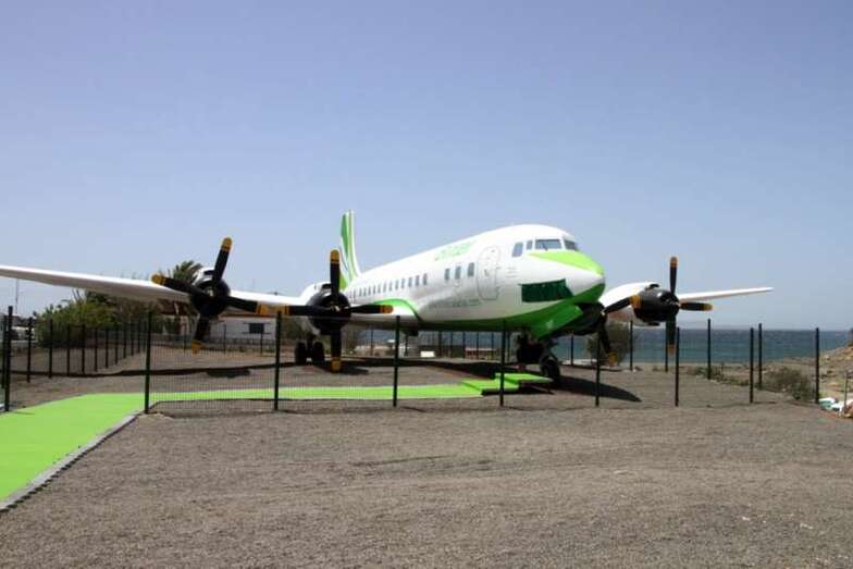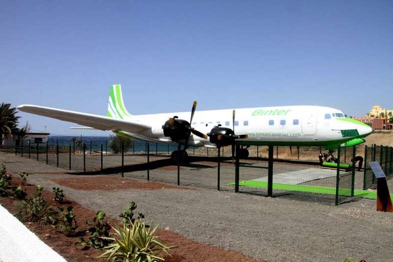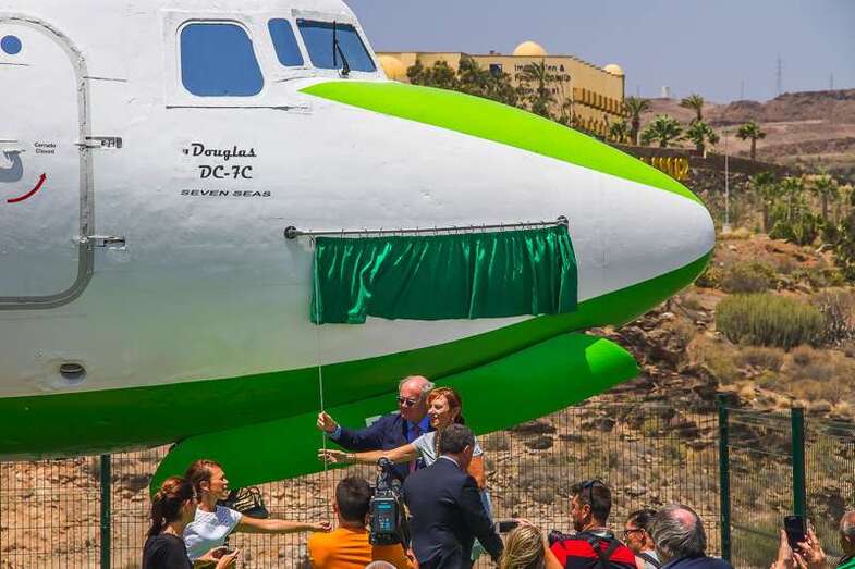 Al pie del avión se ubica una placa conmemorativa cuya leyenda expone: Homenaje a la Aviación Chárter que posibilitó la llegada del turismo y el desarrollo económico de las Islas Canarias.