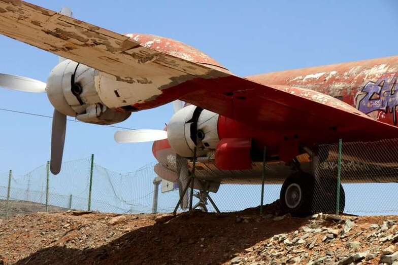 Teldes.-El avión Douglas DC-7C Seven Seas, ubicado desde hace más de treinta años en la entrada del aeródromo del Real Aeroclub de Gran Canaria de El Berriel, luce nuevo aspecto tras su restauración exterior. El pasado viernes 24 de julio Binter y el Real Aeroclub de Gran Canaria presentaron su nueva imagen en un acto oficial.