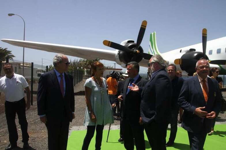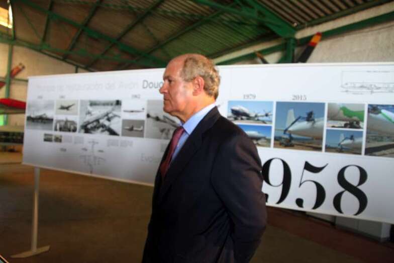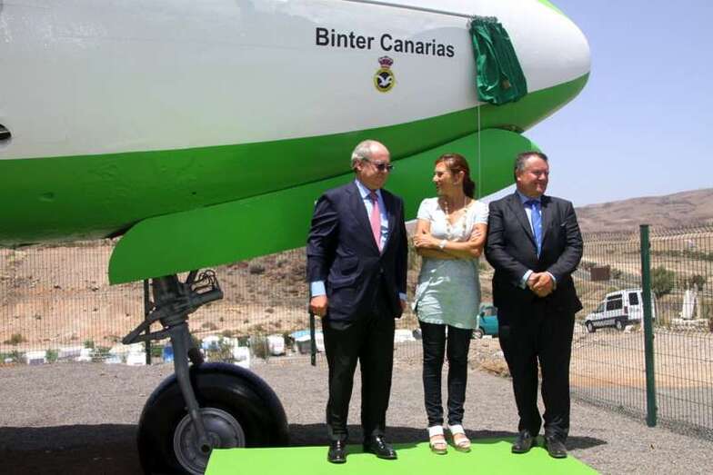 Toma la palabra el Presidente del Grupo Binter, don Pedro del Castillo: “Sra. Consejera de Turismo del Cabildo de Gran Canaria, Sr. Presidente del Real Aeroclub de Gran Canaria, Señoras y Señores. Binter ha impulsado esta iniciativa con el Real Aeroclub de Gran Canaria, con el fin de contribuir a mejorar la imagen de la zona turística de Gran Canaria, dada la visibilidad del avión para todos los visitantes que se dirigen al sur de la isla. Esto forma parte de nuestro programa para ayudar en lo que podamos a mejorar la economía de nuestro archipiélago y por supuesto a la creación de puestos de trabajo. La reparación del fuselaje exterior del avión ha sido realizada por una de las empresas de mantenimiento de Binter, SATI, que el pasado miércoles inauguró sus nuevas instalaciones en el Aeropuerto de Gran Canaria. Un hangar de casí 1.880 m2, en el que se podrán realizar servicios a terceros.