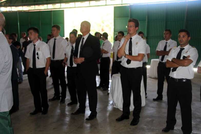 Espero Sr. Presidente que a esta colaboración ya exitosa por su repercusión en los medios de comunicación social y también a la que está en curso con el simulador que ya tenemos de ATR, se sigan otras en materia de enseñanza y de formación aeronáutica. El Real Aeroclub de Gran Canaria lleva tiempo impartiendo, como ustedes saben, cursos de pilotos privados, últimamente también de piloto comercial y en el próximo mes de septiembre de azafatas de vuelo, TCP. Es por ello que aquí en estas instalaciones se completarán todas las enseñanzas aeronáuticas objetivo último de este Real Aeroclub. Sin más, reiterándoles las gracias por su asistencia doy la palabra el presidente del Grupo Binter, don Pedro del Castillo”.