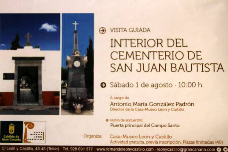 Dentro del programa de actividades culturales que la Casa Museo León y Castillo de Telde, institución museística dependiente de la red de Museos del Cabildo de Gran Canaria, en la mañana del pasado sábado 1 de agosto un grupo de visitantes realizó una visita guiada por el director conservador de la Casa Museo, Cronista Oficial de la Ciudad de Telde, Antonio María González Padrón, al cementerio de San Juan Bautista de la ciudad de Telde, al que dedican un recorrido histórico, arquitectónico, artístico y literario.