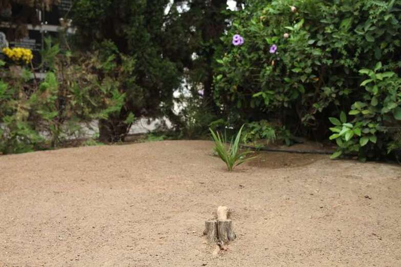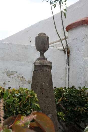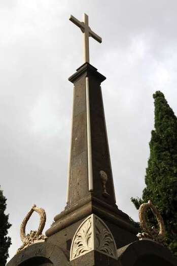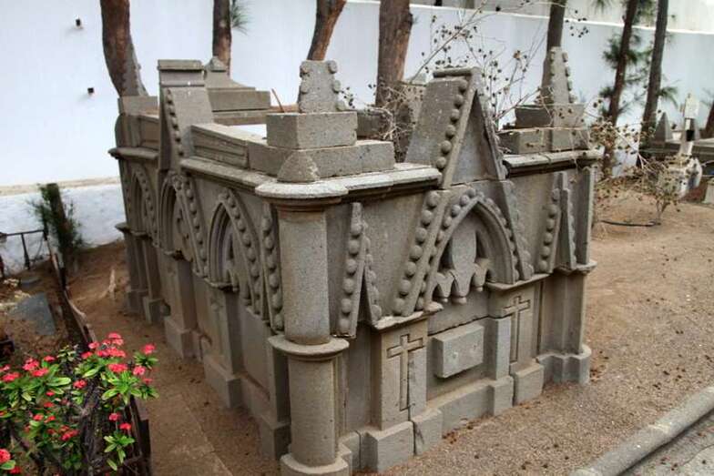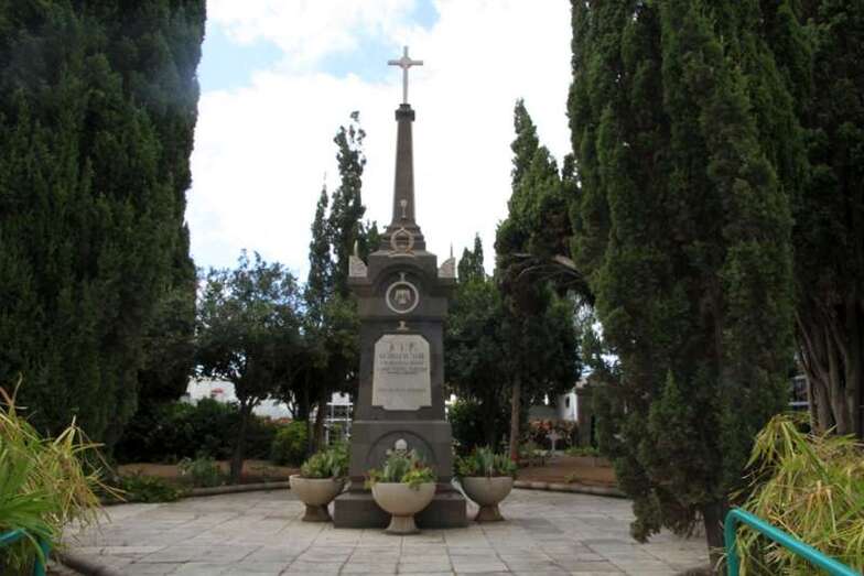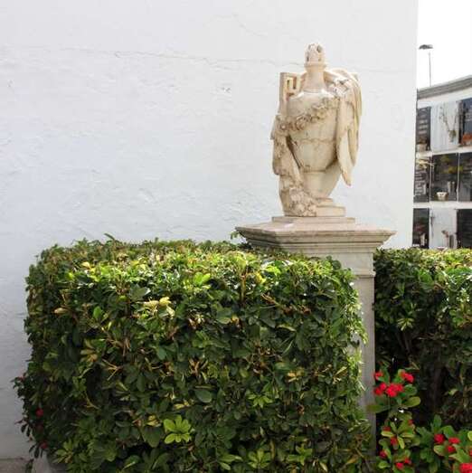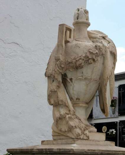 Con este inicio se logra los enterramientos en el campo santo venciendo los reparos a sepultarse fuera de tierra sagrada. Sobre una tumba que en principio señaló los límites del cementerio, y quizás se ubicara fuera, muestra la escultura de un artístico búcaro, símbolo de la muerte y la resurrección, cubierto con una especie de manto y en su boca llamas de la resurrección y el recuerdo. Otra sepultura en la que una columna de piedra eleva una urna en madera, cuya lápida al pie permanece sepultada por la tierra del parterre.