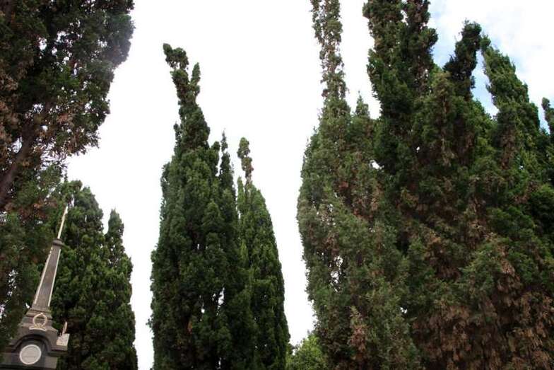 ¿Qué mano os quitó la vida,/ cipreses del cementerio?/ ¡Qué alma ruin os dio la muerte/ a vosotros compañeros/ de la Muerte, veladores/ del gran sueño?/ ¿Quién ha matado la vida/ en el viejo cementerio?/ Cipreses: vuestras raíces/ arrancaban a la tierra sus secretos/ y vuestras ramas erguidas/ hablaban de los misterios/ de la muerte al infinito…../ Vosotros, en el silencio/ de aquella lejana tarde,/ gris y fría de un invierno,/ oísteis los secos golpes/ que en tierra el sepulturero/ daba con el azadón/ que abría, pertinaz, un surco nuevo./ Era un surco como tantos/ en el campo aquel abrieron;/ pero al borde de él, aquella/ fría y gris tarde de invierno,/ en un severo ataúd/ visteis a mi padre muerto…./