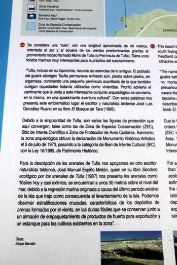 La de Tufia como todas las identificadas en el territorio insular ha suscitado el interés, tanto de los investigadores, historiadores, y el de los visitantes, por el conocimiento y la preocupación por conocer las formas de vida, costumbres de aquellos primeros pobladores, de fuentes autorizadas, especialistas en esta etapa de la historia, del acontecer prehispánico, de la conquista y etapas posteriores.