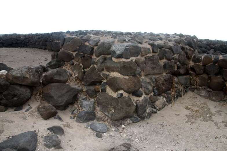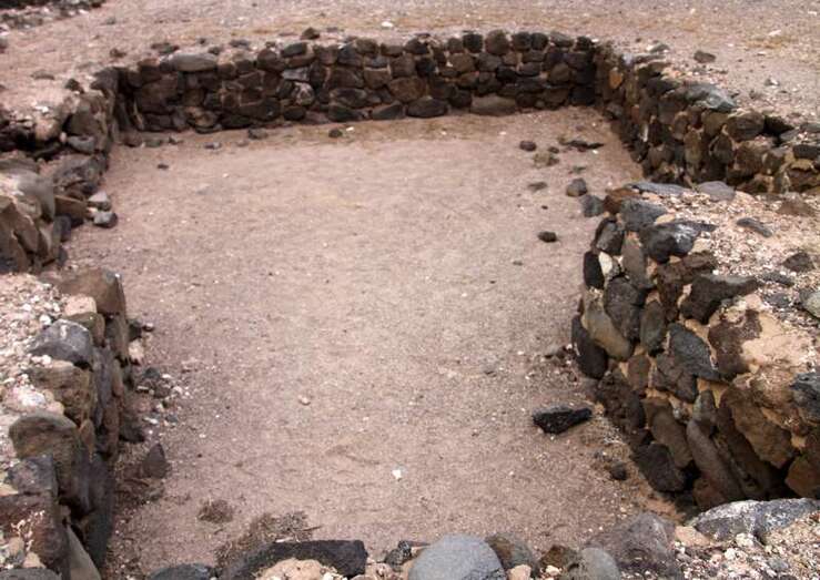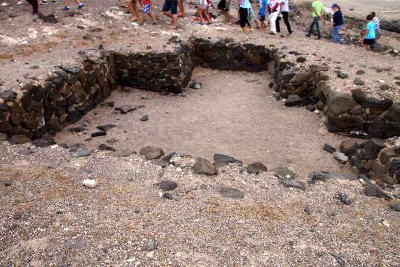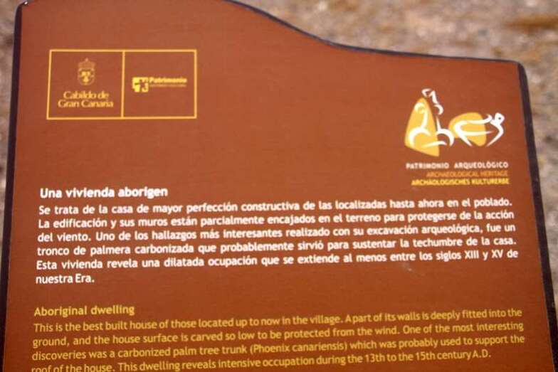 Una de las viviendas aborígenes observadas presenta una mayor perfección constructiva. La edificación y sus muros están parcialmente encajados en el terreno para protegerse de la acción del viento. Uno de los hallazgos más interesantes realizado en su excavación arqueológica, fue un tronco de palmera carbonizada que probablemente sirvió para sustentar la techumbre de la casa. Esta vivienda revela una dilatada ocupación que se extiende al menos entre los siglos XIII y XV de nuestra Era. Los suelos de las viviendas mantenían el mismo nivel elevándose los techos hasta una media de 2-2,5 mts de altura. La vivienda soterrada con anchos muro, uno exterior y otro interior con un espacio intermedio de relleno de materiales, propios para soportar las diferencias de temperatura, más duraderas y seguras.