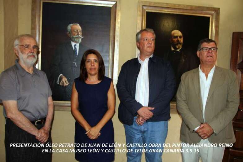 La Casa Museo León y Castillo de Telde recibió en la mañana del jueves 3 de septiembre el cuadro de la figura de don Juan de León y Castillo, óleo del artista Alejandro Reino que fue presentado con la asistencia del Consejero de Cultura del Cabildo de Gran Canaria, Carlos Ruiz. Jefa de Servicios del Cabildo, Alicia Bolaños. Cronista Oficial de Las Palmas y Gran Canaria, Juan José Laforet.Representación de la corporación municipal teldense encabezada por la alcaldesa de Telde, Carmen Hernández, ediles Celeste López, Guadalupe Santana, Álvaro Monzón, y María Luisa Dávila, recibidos todos por Antonio María González Padrón, director conservador de la Casa Museo León y Castillo, dependiente de la red de Museos del Cabildo grancanario.Presentación del óleo de don Juan de León y Castillo, obra que a partir de esta fecha ocupa el espacio correspondiente junto al cuadro de su hermano Fernando de León y Castillo en la Sala del Museo dedicada al ingeniero que hizo realidad las principales obras de ingeniería civil que hoy representan el emblema, avance económico y social de Gran Canaria, como es el Puerto de La Luz de Las Palmas de Gran Canaria y el Faro de Maspalomas.El Director Conservador de la Casa Museo León y Castillo y Cronista Oficial de la Ciudad de Telde, da la bienvenida y agradece la asistencia a esta presentación artística, expone: “Gracias a las personalidades asistentes a los medios de comunicación, como ustedes saben la Casa Museo León y Castillo desde su creación en 1954, tuvo como objetivo principal salvaguardar todo lo concerniente a dos figuras históricas de gran importancia, no solamente para Gran Canaria, sino para el archipiélago, sino también a nivel español: Juan de León y Castillo y Fernando de León y Castillo.Pero no es menos cierto que todo lo que fue entregando la familia del Marquesado del Muni era mayor que lo había entregado la familia de don Juan, la presencia de don Fernando fue mayor en cada una de nuestras salas. Y le debíamos un equilibrio mayor a la figura de don Juan que fue un intelectual, un hombre de gran importancia en el mundo de la ingeniería de Caminos, Canales y Puertos a nivel del estado español y europeo. Si no fuera por su enfermedad pulmonar hubiese sido un ministro extraordinario de Fomento, porque así se lo hizo saber en varias ocasiones cuando le pidió que formara parte de su gabinete el propio Sagasta, que no se podía sacar la espina de él ser el segundo en la promoción de Ingenieros de Caminos, Canales y Puertos, donde el canario Juan de León y Castillo había sido el primero.Don Juan es hacedor de muchísimas obras, el Puerto de La Luz, el gran emporio comercial y estratégico de España y de Canarias y de también del Faro de Maspalomas, de puertos como el de Puerto Cabras hoy Puerto del Rosario o el propio puerto de Arrecife. Faros importantes a lo largo y ancho de Canarias. Pero tal vez lo que más se desconoce de don Juan es que fue el autor de las actuales fronteras del Sahara Occidental Español. Él fue la persona que el estado español y francés confío para que diseñara el actual Sahara Occidental.El Cabildo siempre ha tenido a gala defender ambas figuras pero como digo faltaba un extraordinario retrato de don Juan. En febrero cuando se cumplió el 125 aniversario del Faro de Maspalomas se expresa la voluntad del Cabildo de dotar a la Casa Museo León y Castillo de Telde, de un buen retrato, y para garantizar este retrato contar con la genialidad, experiencia y maestría del mejor retratista Alejandro Reino y para ello él quiso contribuir a que esta pieza a partir de ahora clave entre las obras pictóricas que guarda la Casa. Pinturas entre las que destacan dos Raimundo Madrazo, esculturas de Mariano Benlliure, y otros muy renombrados. Y ahora Alejandro Reino pasa a la galería de esos autores que han inmortalizado la figura de Juan y Fernando de León y Castillo. El artista va a hablar un poco de cómo ha conseguido la obra y contestará a los medios de comunicación. Gracias pos la asistencia”.El artista Alejandro Reino expresa: “Gracias por mi intervención y sí, efectivamente, me costó bastante trabajo realizar el cuadro por la falta de documentación que había sobre el personaje, me refiero a la documentación gráfica, entonces se ha tenido que hacer la investigación para conseguir la ropa adecuada, buscar sus rasgos, personalidad, eso me llevó tres meses de estudios y de trabajo. Luego la realización de la obra de una persona que no conoces es bastante complicada. Este es el tercero de los cuadros que he hecho porque no termino una obra hasta que me parece que es exactamente lo que me han pedido. Y eso es todo. Muchas gracias”.A preguntas de los medios informativos sobre la posibilidad de dedicar algún tipo de homenaje a la figura de Juan de León y Castillo en el municipio de Telde o fuera, a lo que responde el Consejero de Cultura del Cabildo grancanario, Carlos Ruiz: “Aún no se ha tomado la decisión por estar en los comienzos en esta primera visita a la Casa Museo en la que su director ha indicado la inminencia de la presentación de la obra de Alejandro Reino y cubrir la necesidad de poner cara y cuerpo a los personajes históricos. En esta segunda visita tuve la oportunidad de conocer la obra y felicitar al autor y estamos atendiendo a las sugerencias del director y encantados de continuar los proyectos”.Interviene la alcaldesa de Telde Carmen Hernández a otra pregunta: “Felicitar al pintor Alejandro Reino por el retrato de la figura de Juan de León y Castillo, ha conseguido ir más allá de los rasgos físicos y captar su expresividad y profundidad, por lo menos me lo transmite la mirada por aquello de que la cara es el espejo del alma. Yo creo que además contribuye a la potenciación de nuestro patrimonio cultural para fomentar que Telde sea y tenga cada día más un atractivo turístico com destino para los que buscan en los distintos rincones 