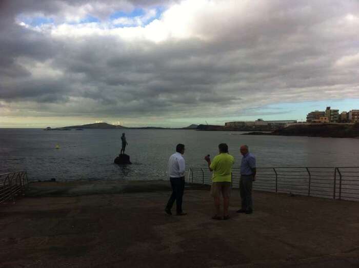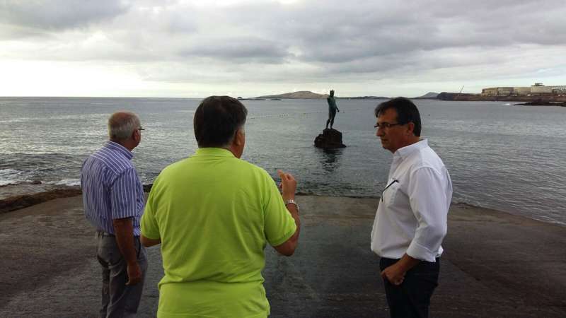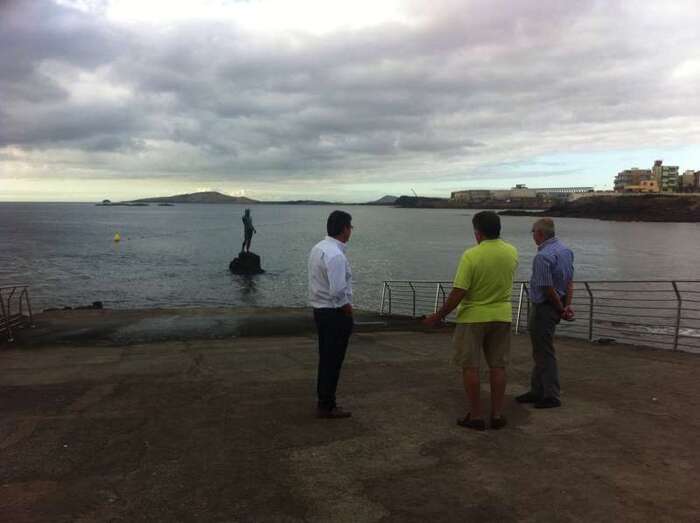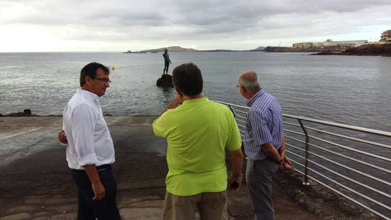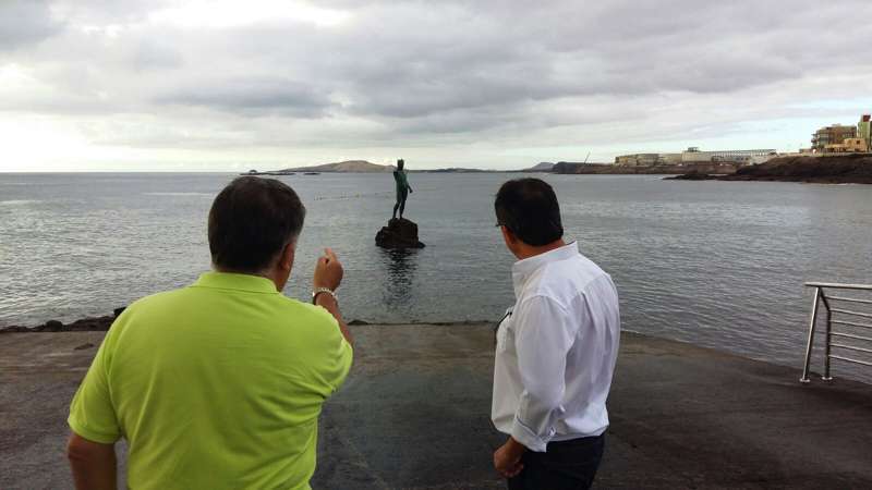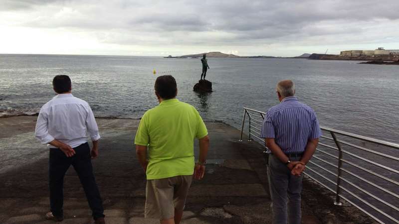 Telde.- El Ayuntamiento de Telde ya ha puesto en marcha las gestiones necesarias para llevar a cabo el arreglo de la escultura de Neptuno, situada en la playa de Melenara, que presenta al menos cinco fisuras en su estructura y ha perdido su tercer punto de apoyo. Así lo ha asegurado el concejal de Patrimonio Histórico, Juan Francisco Artiles, después de evaluar su estado junto a un técnico de la concejalía y al escultor Máximo Riol durante la visita efectuada a la obra artística de Luis Arencibia a primera hora de la mañana de hoy.