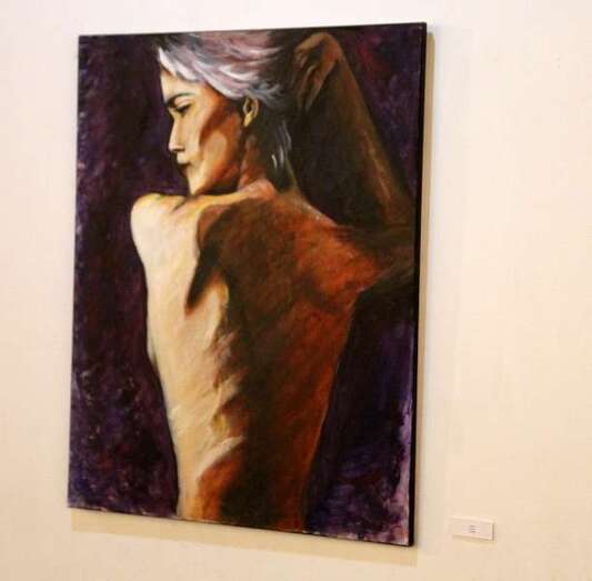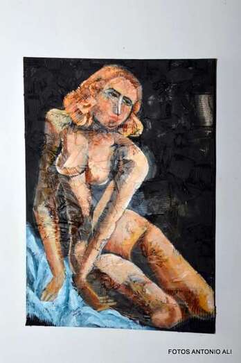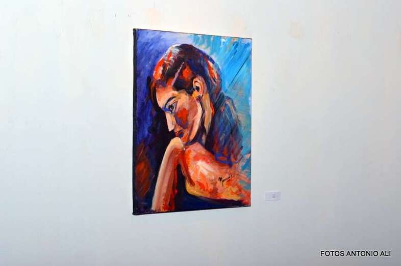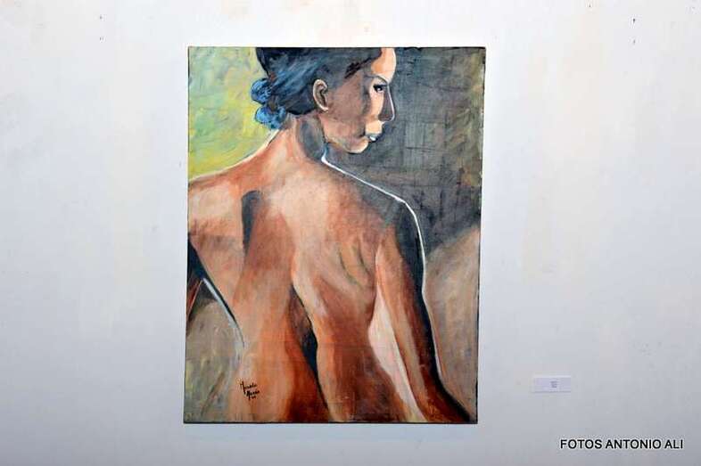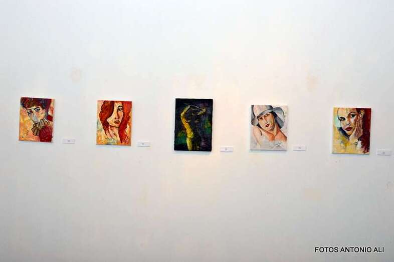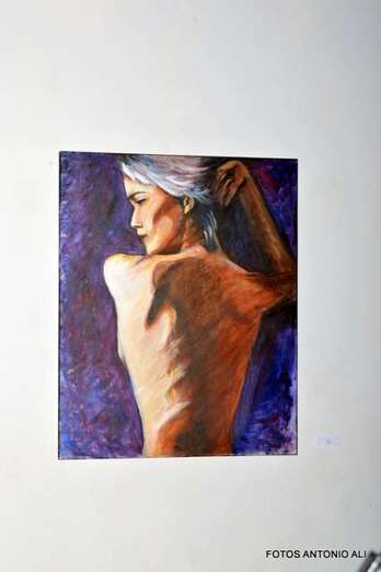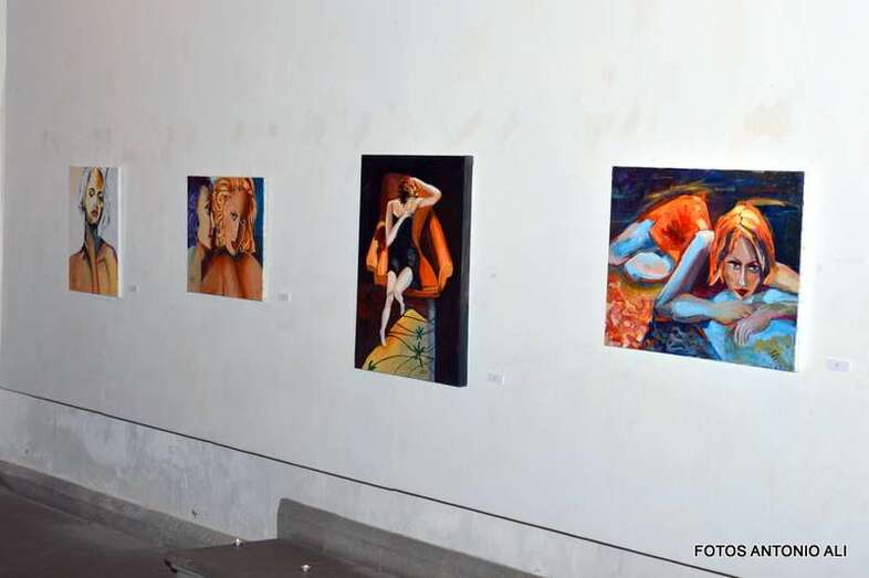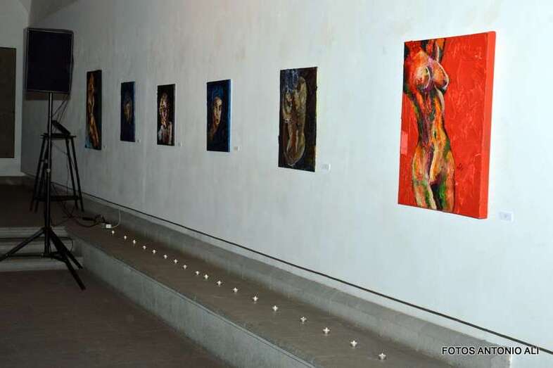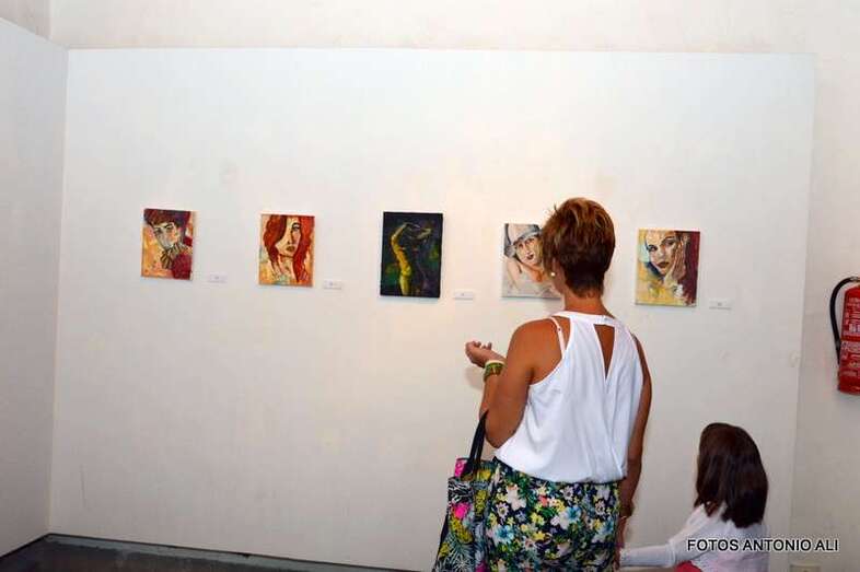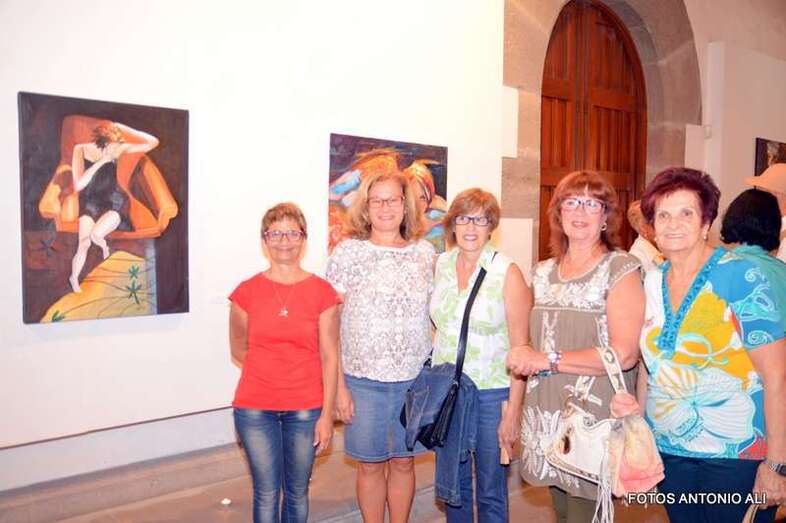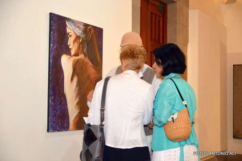 De la primera a la última, expone en diferentes técnicas series tituladas como semblantes, dorsos, en collages,  acrílicos, miradas, tumbada, torsos, cabizbaja, etc, así como diseños de bellos foulards que se exponen en la nave lateral de la sala de San Pedro Mártir. Al final de este acto de inauguración la artista sirvió un vino a los invitados y asistentes a esta nueva cita con el arte en Telde.