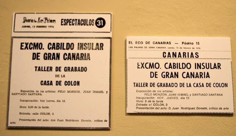 El jueves 1 de octubre quedó inaugurada en la Casa de Colón de Las Palmas de Gran Canaria la exposición 15 Aguafuertes de Juan Ismael, Felo Monzón, Santiago Santana, con la presencia de la directora de la Casa de Colón, Elena Acosta y el Director General de Cultura, Patrimonio Histórico y Museos del Cabildo de Gran Canaria, Oswaldo Guerra.