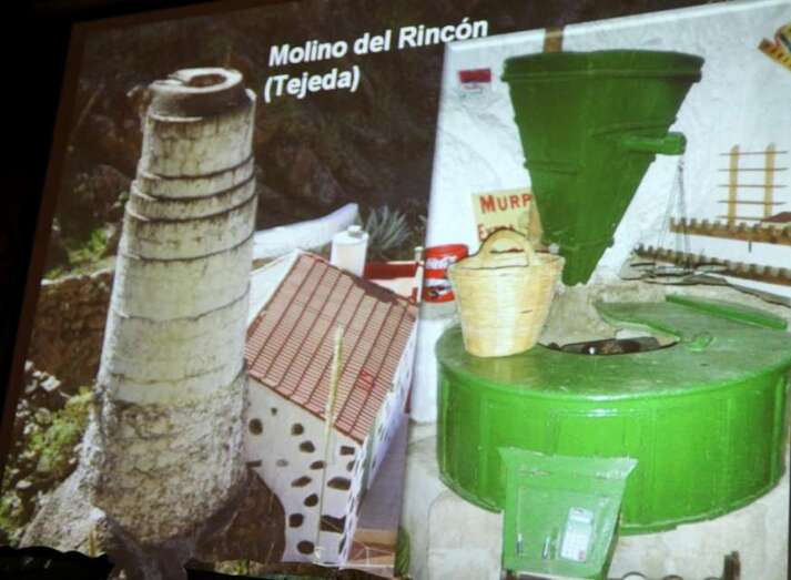 Juan Ismael Santana Ramírez Bibliotecario, Técnico de Museos de la Casa Museo León y Castillo expone la historia de este significativo Molino, proyecta los gráficos de su funcionamiento y proceso mecánico de cada una de las secciones de la maquinaría existente en las secciones de esta industria molinar.