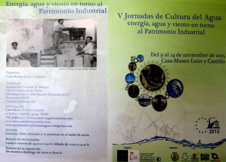 La Declaración del 2015 como Año Europeo del Patrimonio Industrial y Técnico supone un reconocimiento internacional de la dimensión que los bienes industriales ofrecen como parte indiscutible de nuestro patrimonio cultural. La Casa Museo León y Castillo y entidades colaboradoras, quieren adherirse a la celebración organizada por el Consejo Europeo, a la que se han sumado diferentes países y regiones europeas. En esta quinta edición han tenido protagonismo las industrias históricas que usaban como fuente de energía la eólica o la hidráulica. Es el caso de batanes, molinos de caña, norias, molinos de agua, molinos de viento, aeromotores o pequeñas centrales hidroeléctricas. Antiguamente se utilizaban molinos de viento para mover el agua o moler granos y en la actualidad se utiliza como fuente de energía limpia, creándose los aerogeneradores que utilizan la velocidad del viento para conseguir energía eléctrica.
