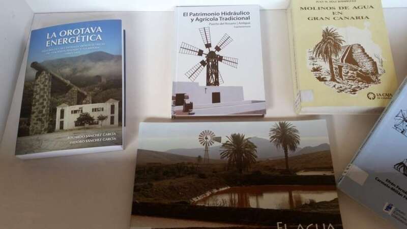 Un referente historiográfico de la evolución de los molinos en Canarias y como ejemplo los creados en Gran Canaria, municipio de Telde, Los molinos de Agua en Gran Canaria y el molino del Conde en Telde, ponencia que el Profesor Manuel Lobo Cabrera desarrolla con toda clase de detalles y documentación, con dos de las grandes y emblemáticas industrias hidráulicas de la época siglo XIX, XX que son y representan este tipo de evolución molinar tanto en su contexto histórico como en el industrial: El Molino del Conde y la Noria de Jinámar, ambos en el término municipal de Telde.