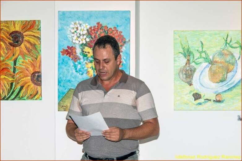 Interviene el presidente de la Sociedad Recreativa La Fraternidad, Ramón Santana que esboza una visión de la personalidad del artista, y agradece la colaboración de la coordinadora y presentadora Mari Carmen Ramos el haber contado con la Sociedad para hacer posible esta muestra artística, literaria y musical. Se da lectura al poema escrito por Guadalupe Santana Suárez, Concejala de Cultura del Ilustre Ayuntamiento de Telde, Tu Recuerdo, recitado en la presentación de la muestra a los medios informativos.