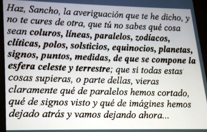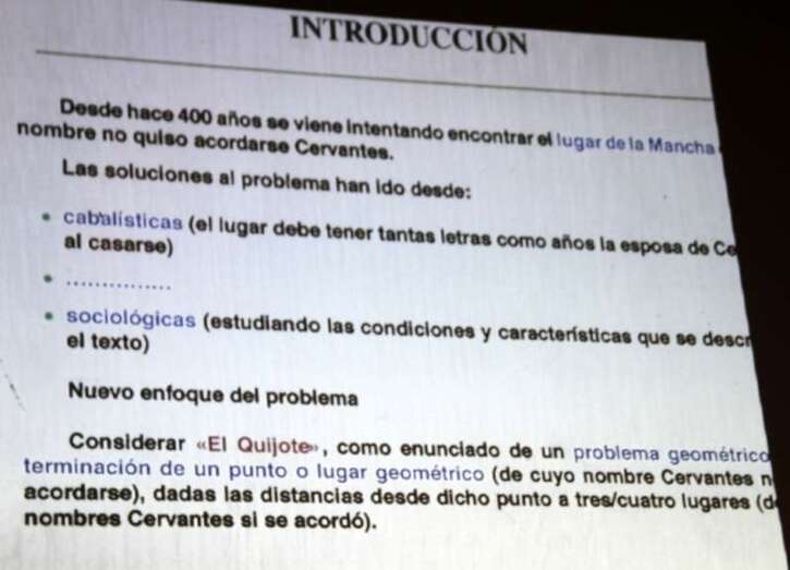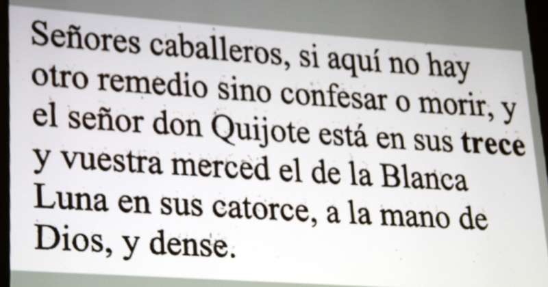 Balbuena dejó claro que El Quijote no es un libro de matemáticas. “Cervantes era un hombre curioso y preparado en muchas parcelas pero no en matemáticas. Por, eso no debe esperarse encontrar profundas reflexiones matemáticas. No obstante sí se hace un uso instrumental de conceptos de conceptos y elementos matemáticos”.