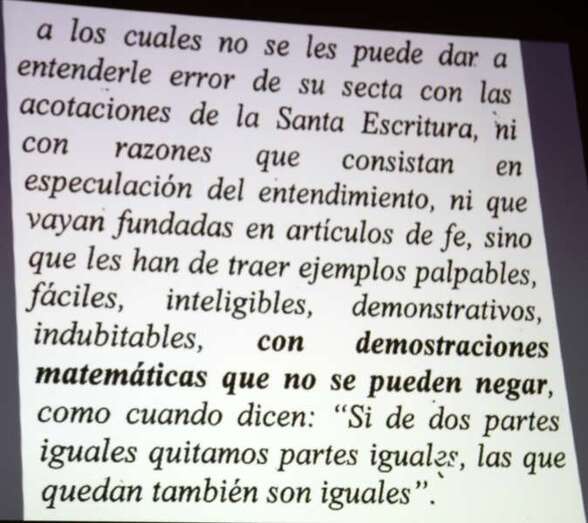 “De estas citas puede deducirse que concede a las matemáticas la fuerza de las deducciones incuestionables ( demostraciones matemáticas que no se pueden negar), lo que representa un interesante matiz por cuanto que tuvieron la consideración de instrumento útil para otras actividades y oficios hasta mediados del siglo XVI, incluso en toda Europa”, apuntó.