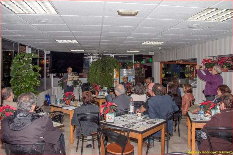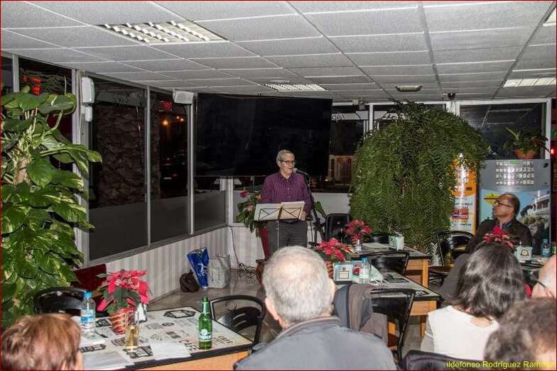 Abre el acto y coordina la presentación e intervenciones, el escritor y poeta teldense Julio Pérez Tejera, con el afectuoso saludo de bienvenida  presentando el acto denominado “el canelazo”, una bebida que es ofrecida por el personal y la gestora del bar cafetería El Mercado. Como primera intervención el escritor y poeta, Adolfo García García, activista y colaborador cultural, siempre atento y asiduo asistente a los actos culturales teldenses y de las islas, como agradecimiento a Julio Pérez Tejera por la labor que desarrolla, dedica los versos de un poema incluido en el último poemario, Amorosa Presencia, que Julio presentó recientemente en la Biblioteca Municipal de Arnao.